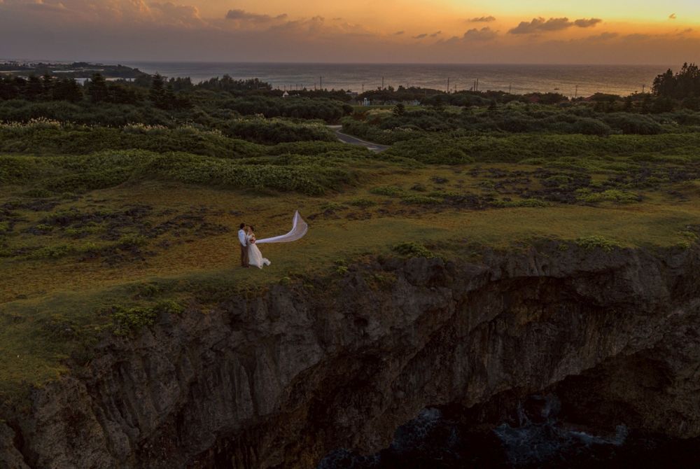 残波岬など、海に沈む夕日とともに撮る、ロマンチックな時間帯の撮影にぴったりのロケ地