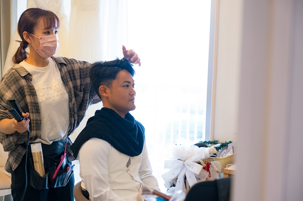 新郎様ヘアセットや新郎様メイク、ボディメイクでしたら当日でもOK!