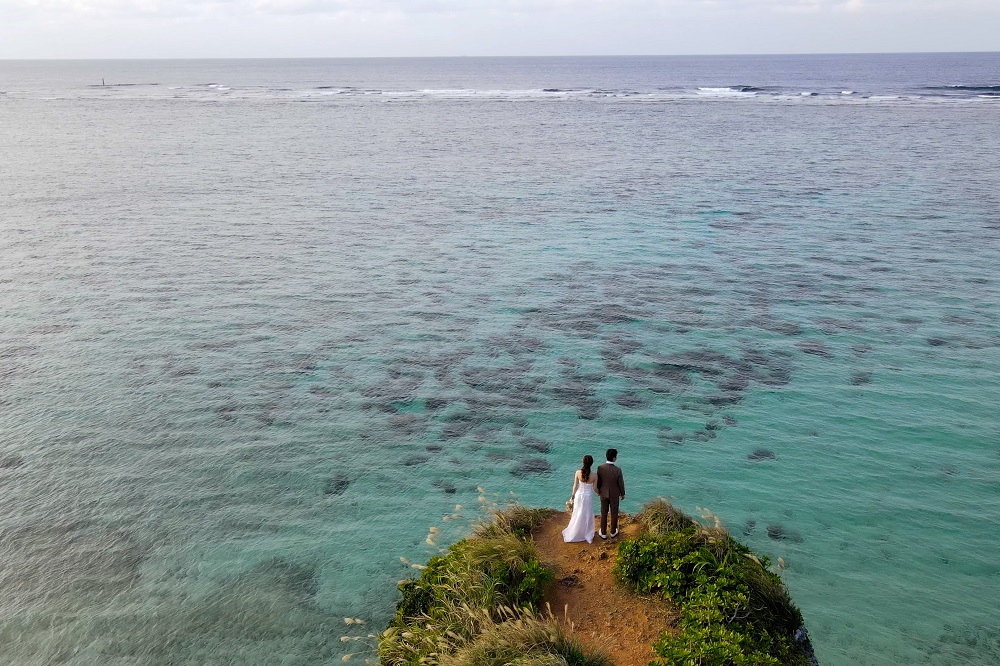 上空からの青い海とお2人…♡♡♡