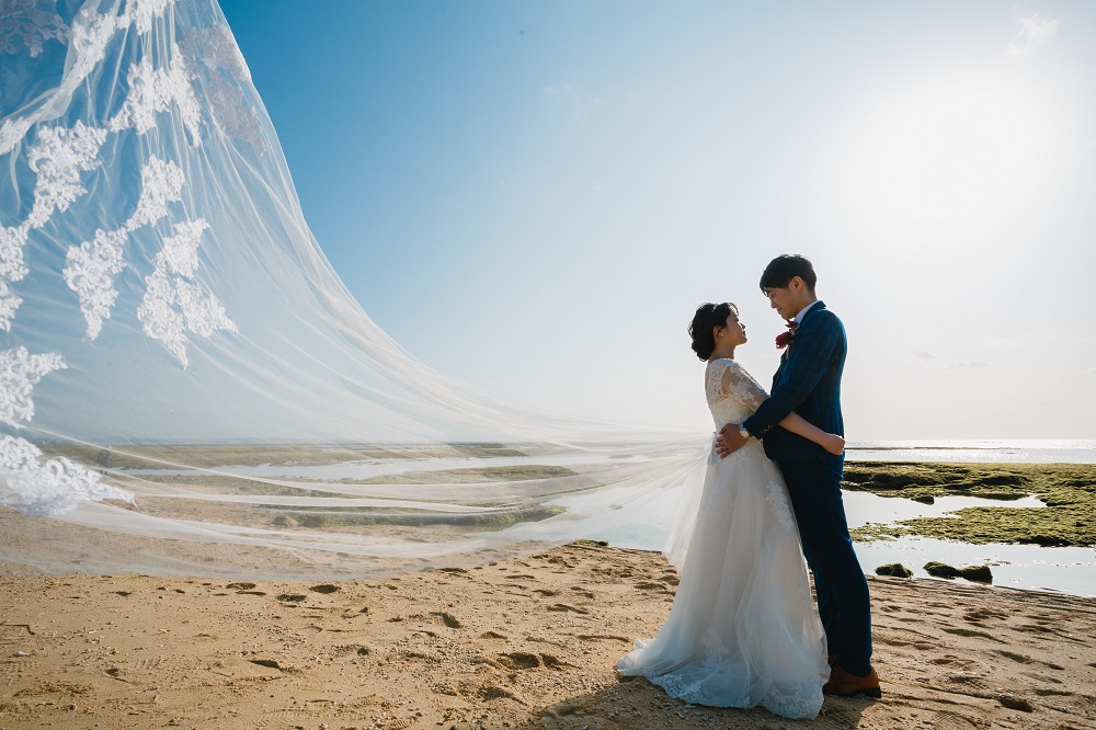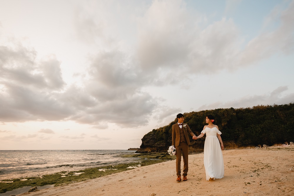 ザネー浜は洞窟が特徴的な撮影ポイントなので、崖や洞窟などの岩場でも歩きやすいドレスがお勧めです☆